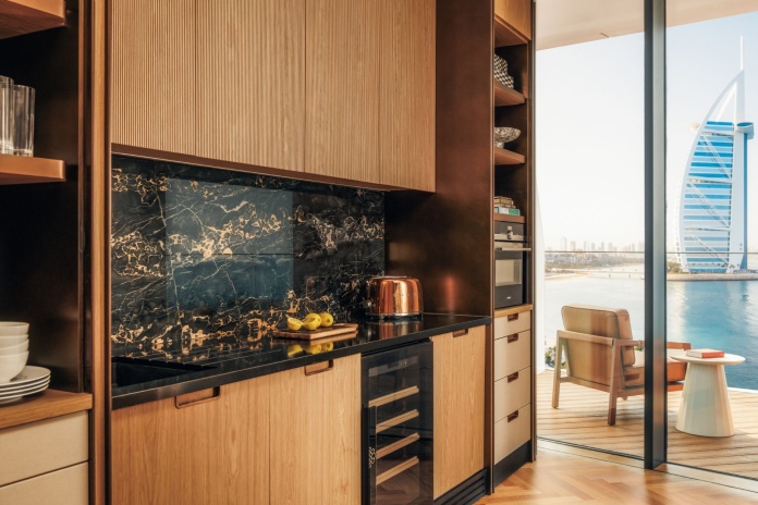 5 спален с двуспальными кроватями king-size, гардеробная, гостиная комната, кухня, ванные комнаты, отдельная зона для развлечений с приватной барной стойкой и обеденной зоной на 12 человек, комната с тренажёрами и для спа-процедур, комната для няни, большая терраса по периметру с панорамным видом на 180° от Jumeirah Burj Al Arab до Burj Khalifa, небольшой персональный бассейн на террасе, услуги батлера, эксклюзивный доступ в Iliana Pool Club, виниловый проигрыватель, телескоп для наблюдения за звездами.
