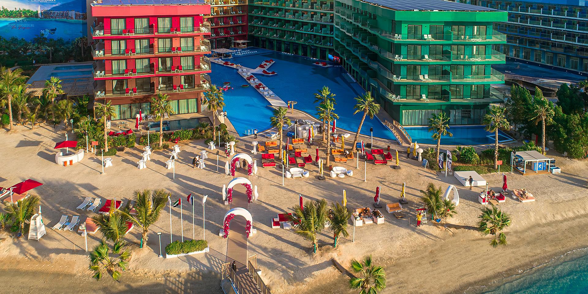 Курорт известен своей вечеринкой на протяжении всего дня, где гости могут наслаждаться музыкой, танцами и непрерывными развлечениями. Особенностью отеля является улица дождя — уникальное место, где дождь можно вызвать по желанию, что добавляет ещё больше волшебства и оригинальности в атмосферу. Отель также славится своими ресторанами, барами и ночными клубами, в том числе La Brasserie, Lagoon Pool Bar, и Champagne Bar, где предлагаются блюда и напитки на любой вкус.