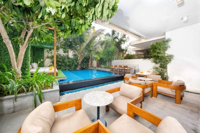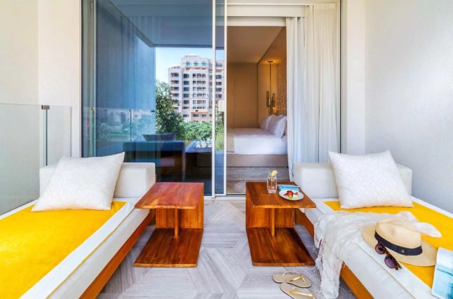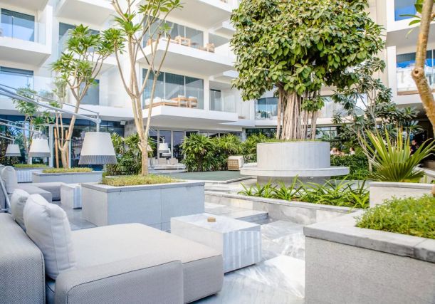 Дизайн FIVE Palm Jumeirah был создан штатным архитектором Набилом Акики, гостей встречает стеклянный куб размером 15 на 15 метров, открывающий захватывающий вид на бассейн, море и горизонт с самого входа.