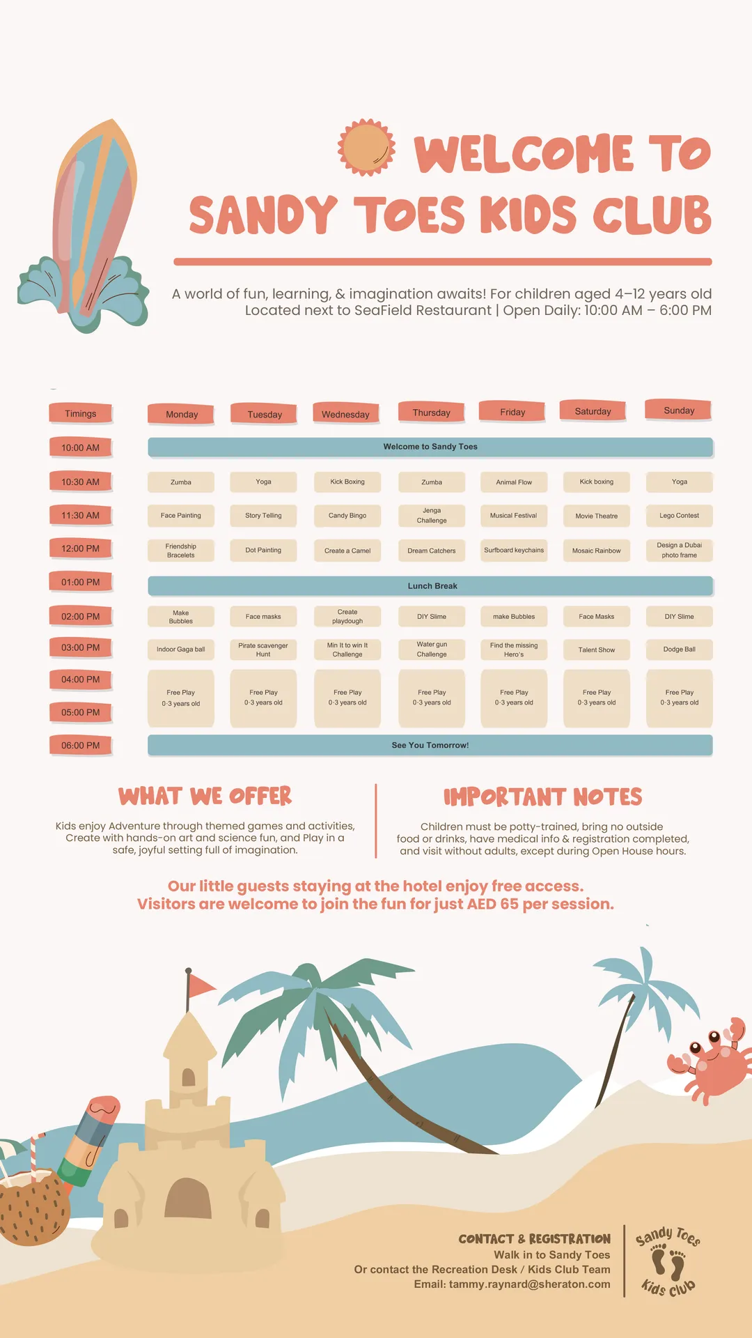 Сообщение от 20.01.2026: обновлённый детский клуб, тепепрь с названием Sandy Toes.