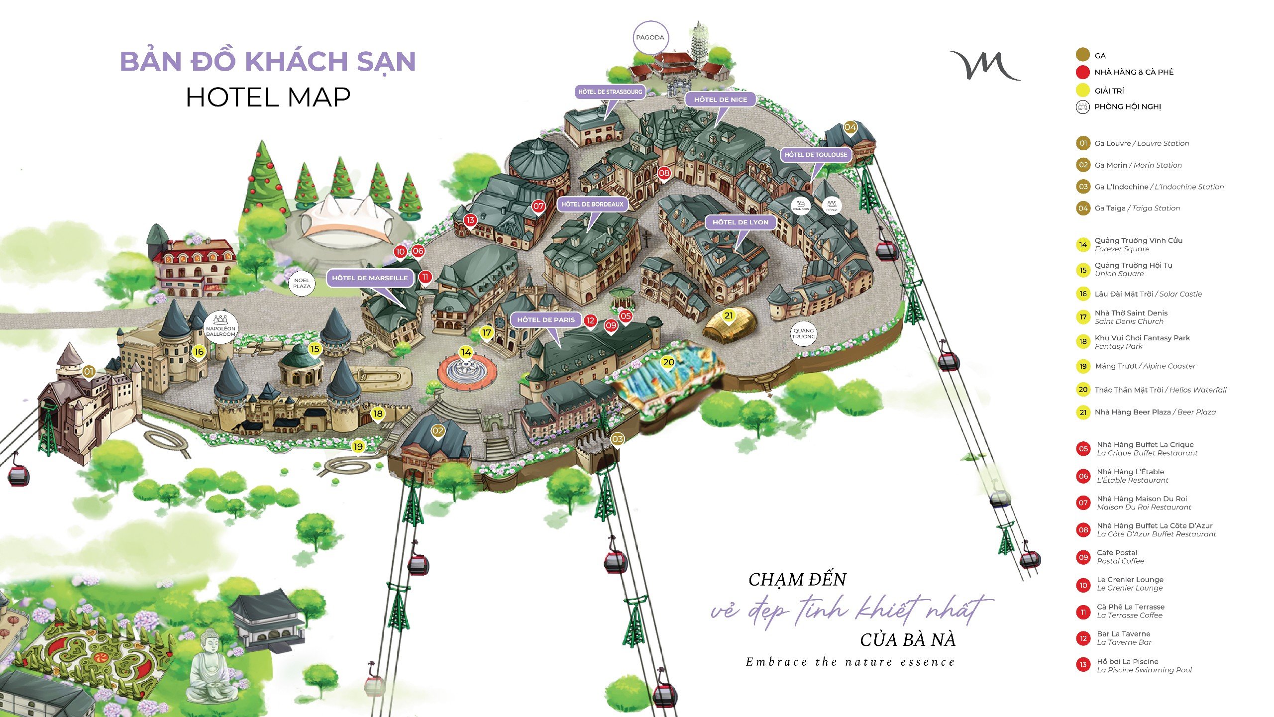 Mercure Danang French Village Ba Na Hills — горный отель на вершине Бана в Дананге, удостоенный премии Best Mountain Retreat Global 2023 по версии Haute Grandeur Award. Добраться сюда можно только по канатной дороге, откуда открываются панорамные виды на французскую деревню в готическом стиле XIX века.