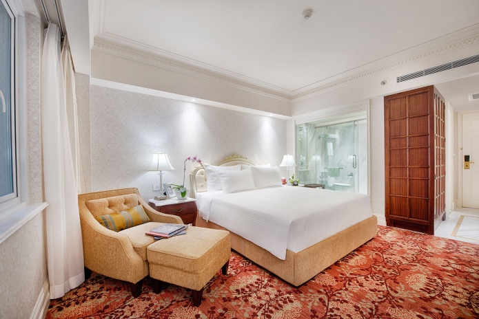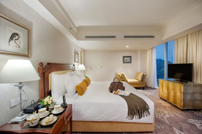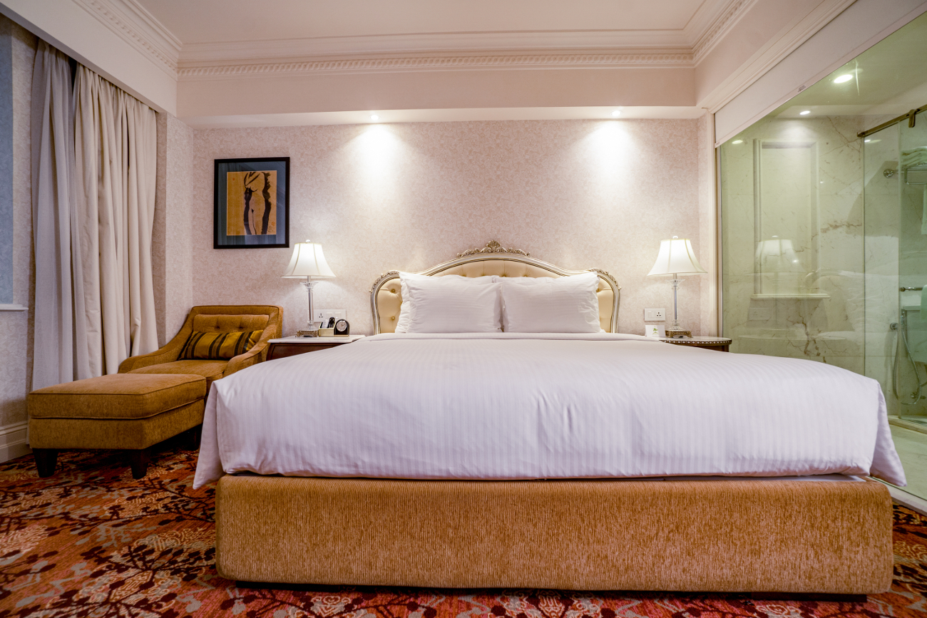 Номер премиум-класса на верхних этажах отеля: отдельная спальня с двуспальной кроватью king size, отдельная гостиная, отдельная ванная комната со c душевой кабиной; в части номеров – меблированная терраса и собственный небольшой сад, вид на город с высокой точки;