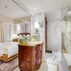 Спальня с двуспальной кроватью, отдельная гостиная с обеденной зоной и отдельная кухня с плитой, вытяжкой и раковиной, отдельная ванная комната со стеклянной стеной со шторкой, душевой кабиной и ванной, вид на город;