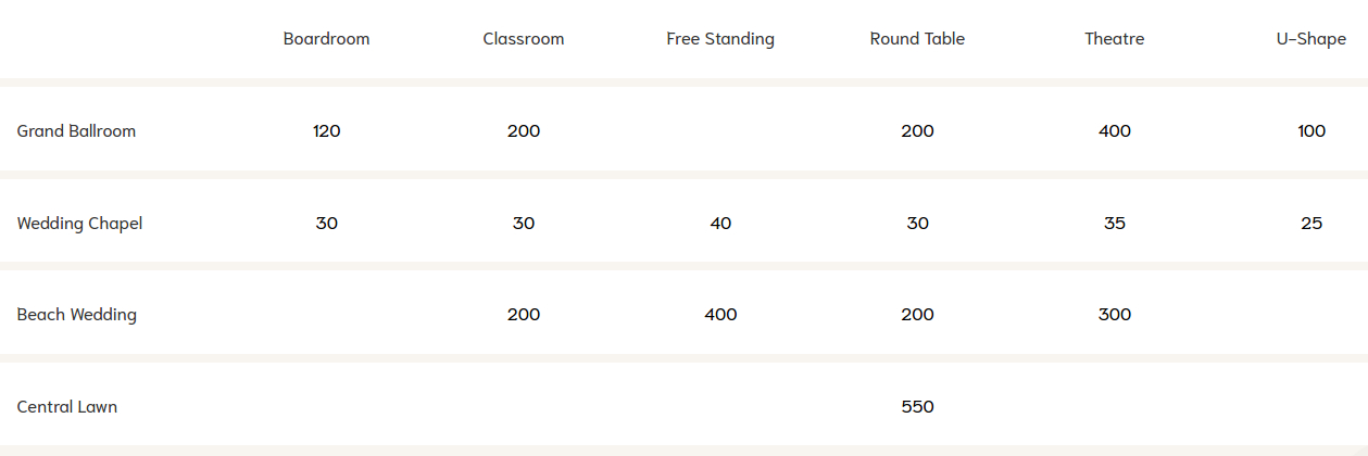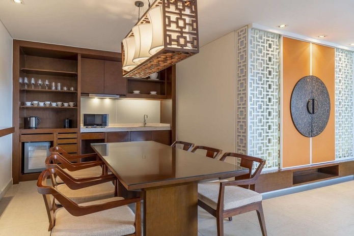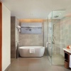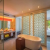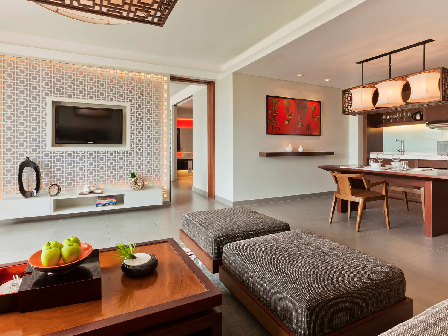 В номерах: Wi-Fi, кондиционер, окна от пола до потолка, телевизор, телефон, сейф, рабочий стол, лампа, диван/кушетка, стул/кресло, журнальный столик, тапочки, халаты, туалетно–косметические принадлежности, тропический душ, весы в ванной, зеркала для макияжа, фен, мини–холодильник/ мини-бар (платно), бесплатная бутилированная вода, принадлежности для чая/кофе, электрочайник, кофемашина Nespresso (в сьютах с мини-кухней), гладильные принадлежности, душ на открытом воздухе (для сьютов с бассейном), бесплатные велосипеды для гостей отеля.
