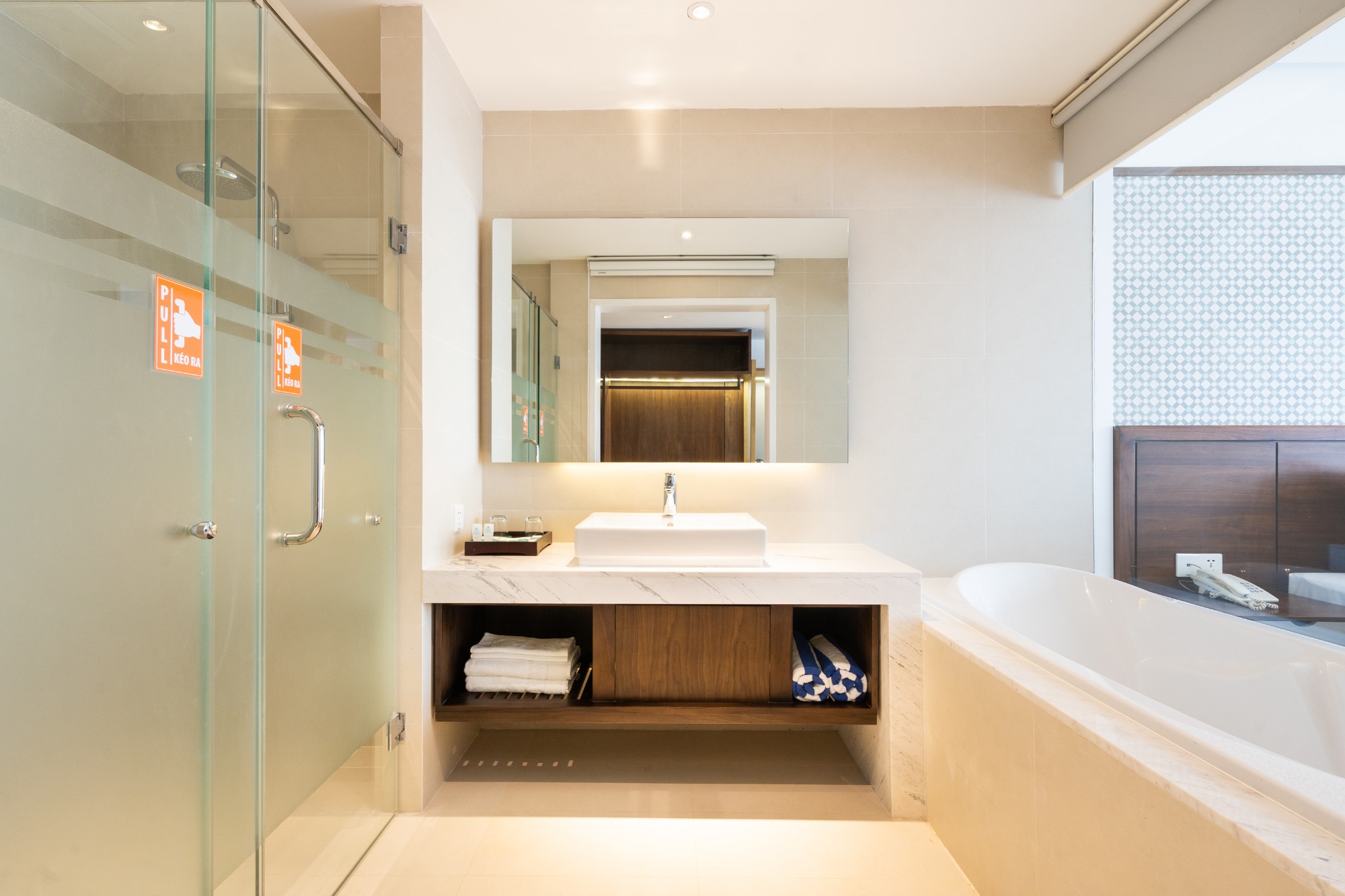 В номерах: телевизор с кабельными каналами, письменный стол, приветственные конфеты, сейф, зонт, телефон, кондиционер, бесплатный чай, питьевая вода и кофе, чайник, фен, тапочки, Wi-Fi.