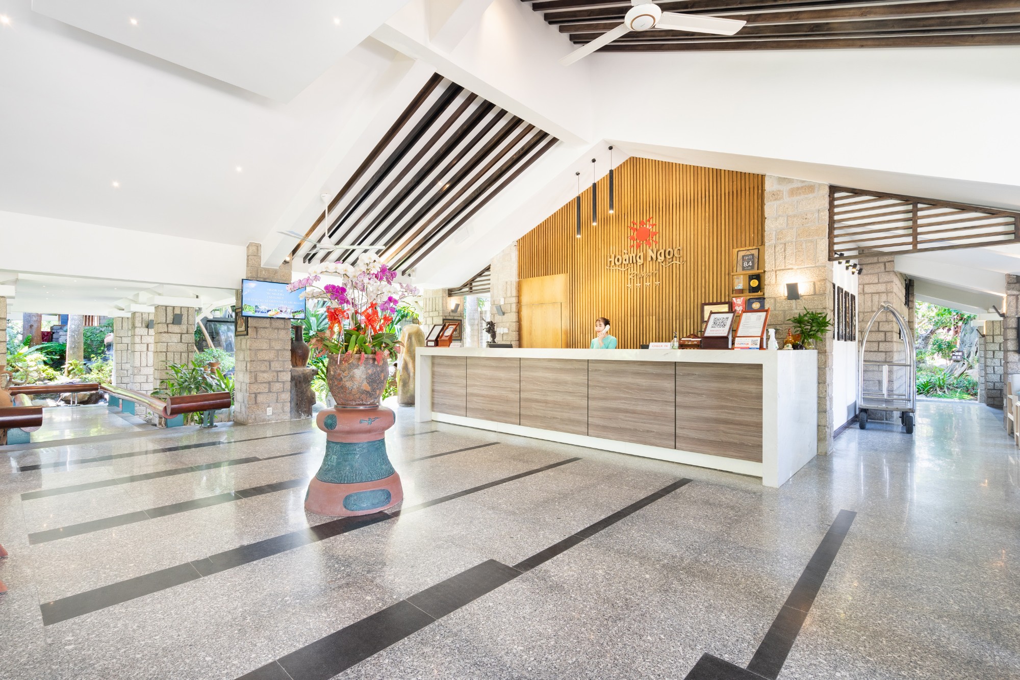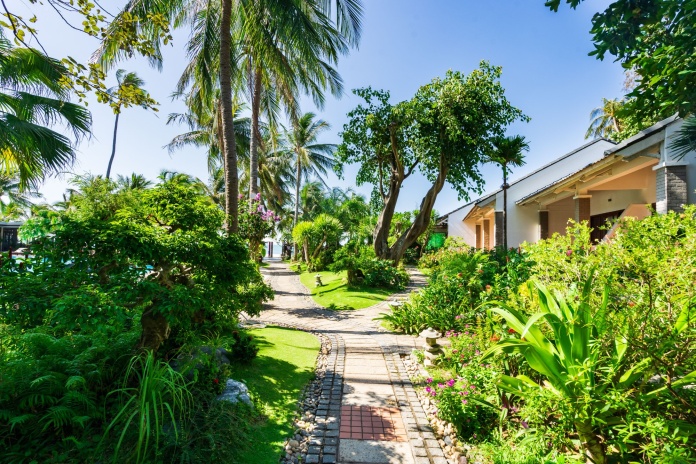 Hoàng Ngọc Beach Resort занимает 2 гектара на пляже Муйне. Территория курорта ухожена и украшена разнообразными деревьями и цветами, включая яркие бугенвиллии, особенно заметные весной и летом.