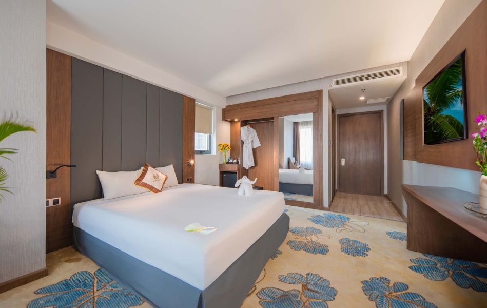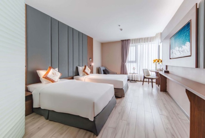 Vesna Hotel Nha Trang — современный пятизвёздочный отель на первой линии бульвара Чан Фу. Отель предлагает стильные номера с видом на море и город, частный пляж, панорамный инфинити-бассейн, ресторан международной кухни. Благодаря удобному расположению в центре Нячанга, Vesna подходит как для комфортного пляжного отдыха, так и для знакомства с городом.